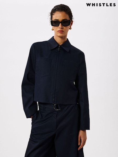 Whistles Blue Compact Cotton Cropped Jacket
