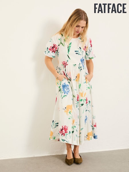 FatFace Ivory Beachwear Coral Embroidered Kaftan Dress