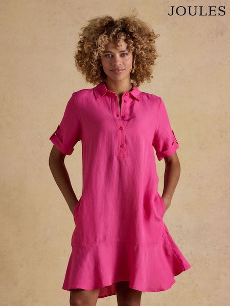 Joules Thea Pink Shirt Dress With Bias Hem Frill