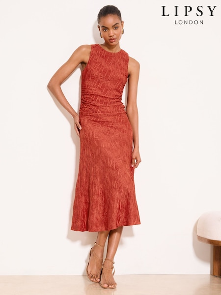 Lipsy Rust Red Textured Jersey Midi Dress