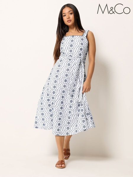 M&Co White Embroidered Tie Waist Dress