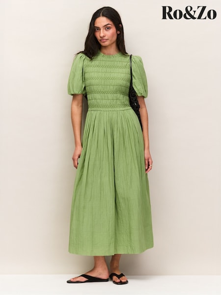 Ro&Zo Light Green Petite Cotton Shirred Bodice Dress