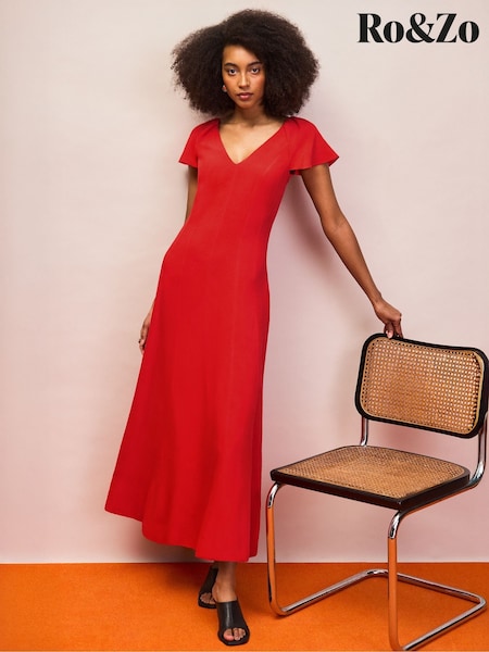 Ro&Zo Red Flutter Sleeve Dress With Linen