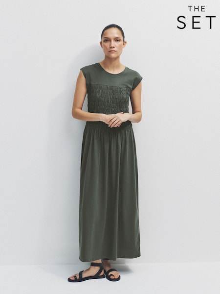 The Set 2 Pack Shirred Maxi Jersey Dresses Khaki Green/Black