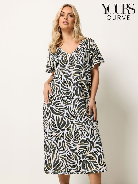 Yours Curve Blue Milkmaid Maxi Dress With Linen