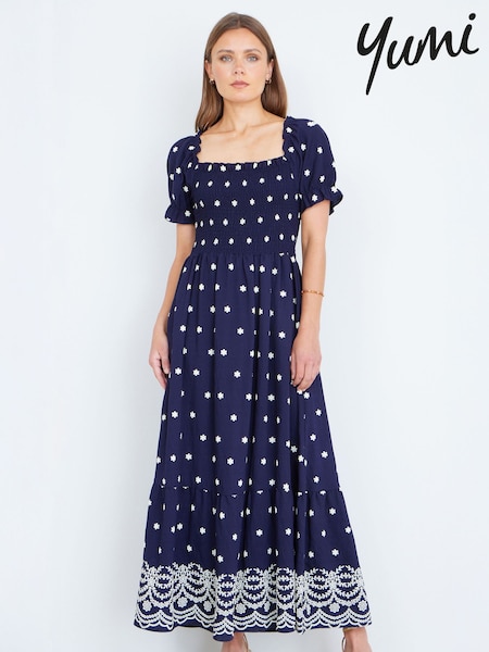 Yumi Blue Border Hemline Smocked Maxi Dress