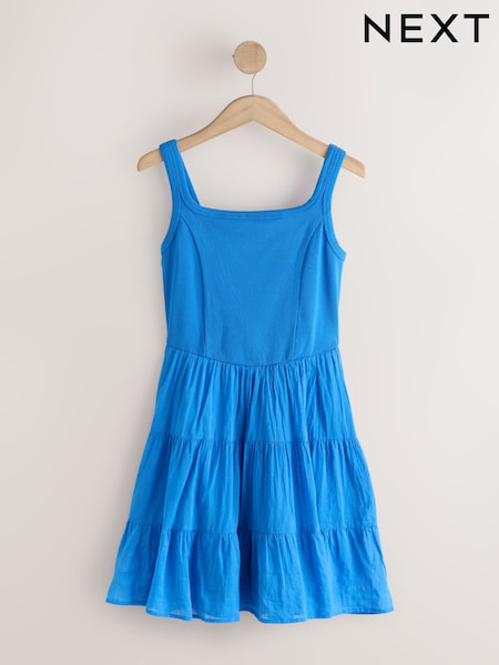 Cobalt Blue Square Neck Mini Tiered Summer Dress
