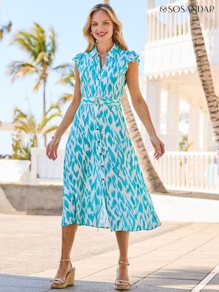 Yumi Blue Stripe Print Relaxed Midi Shirt Dress With Belt