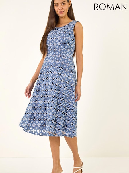 Roman Blue Embroidered Midi Dress