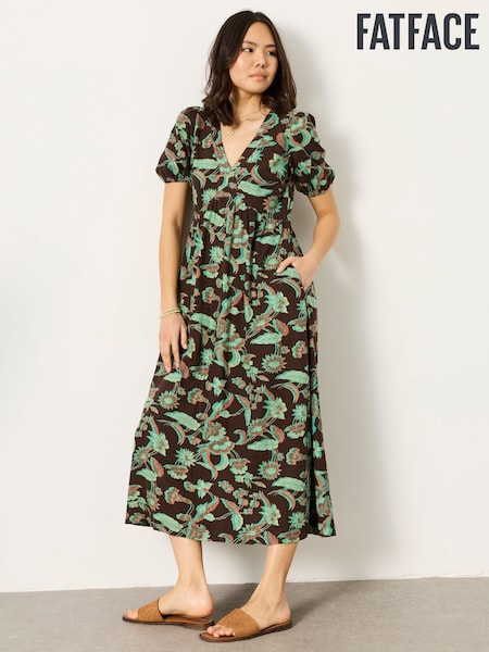 FatFace Remi Chocolate Brown Batik Midi Dress
