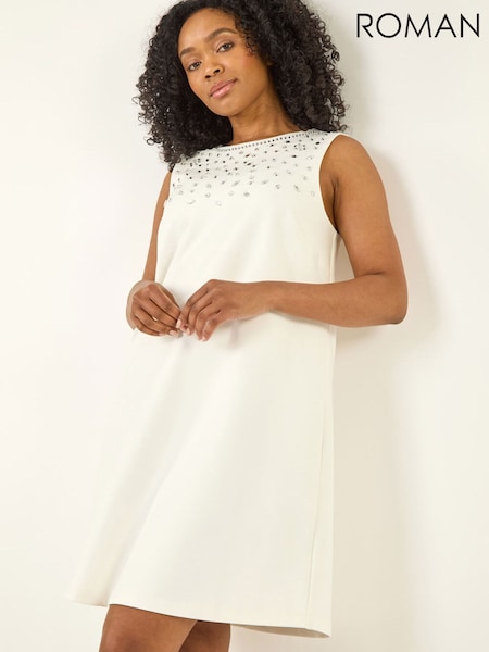 Roman White Petite Embellished Dress