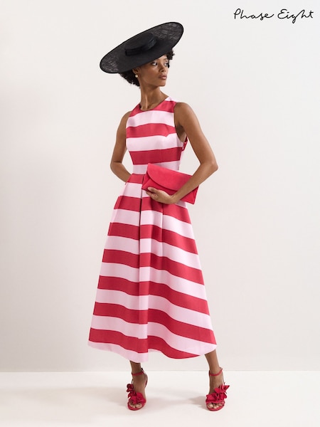 Reiss Pink Poppy Petite Short-Sleeve Waisted Midi Dress