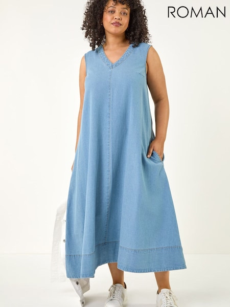 PixieGirl Petite Blue Stretch Maxi Denim Shirt Dress