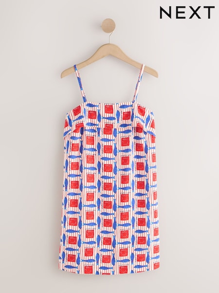 Red Fish Print Strappy Foldover Mini Summer Dress