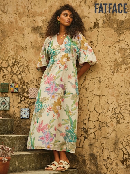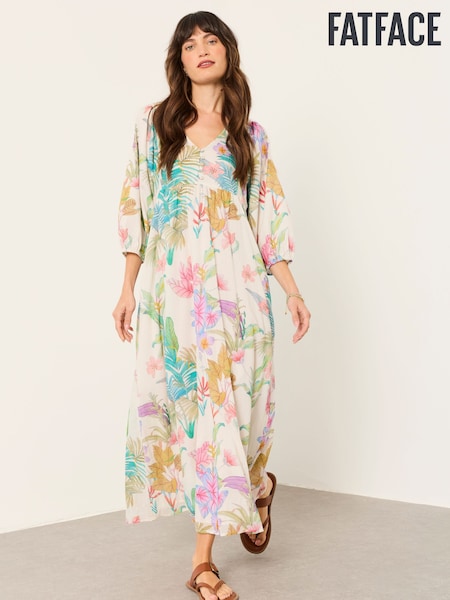 FatFace Lilibet Ivory Tropical Midi Dress