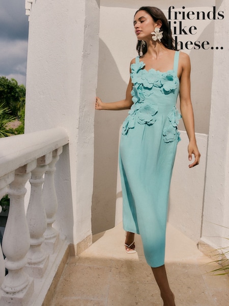 Friends Like These Blue Floral Detail Strappy Midi Dress