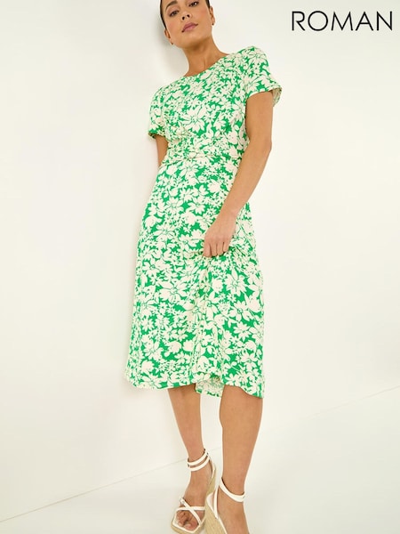 Roman Green Ditsy Gathered Skirt Stretch Midi Dress
