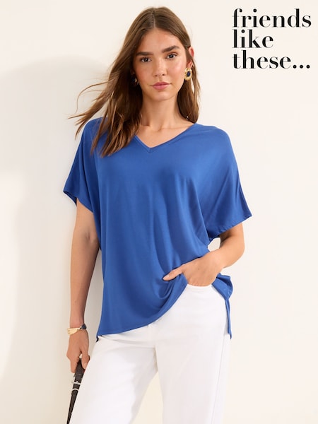 Friends Like These Navy Soft Jersey V-Neck Long Sleeve Tunic Top