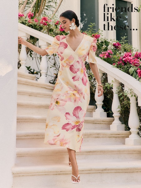 Friends Like These White Petite Puff Sleeve Floral Detail Midi Dress