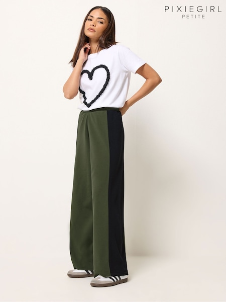 PixieGirl Petite Green Side Panel Wide Leg Trousers