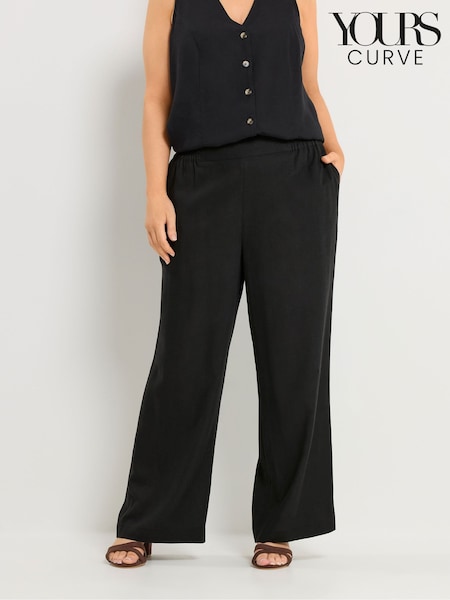 Yours Curve Black Linen Blend Wide Leg Trousers