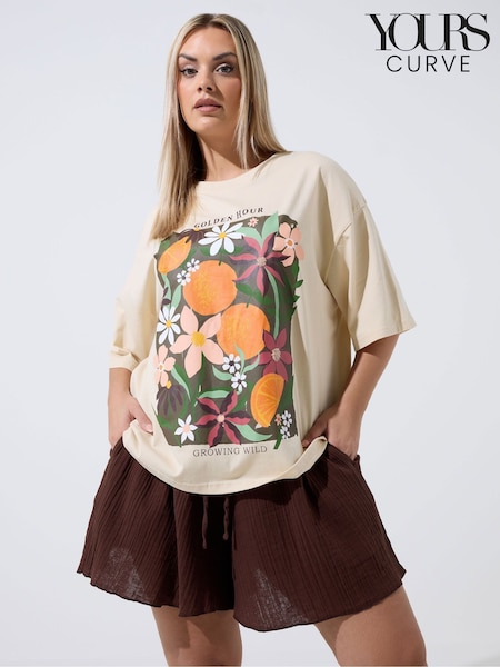 Yours Curve Natural Floral Graphic T-Shirt