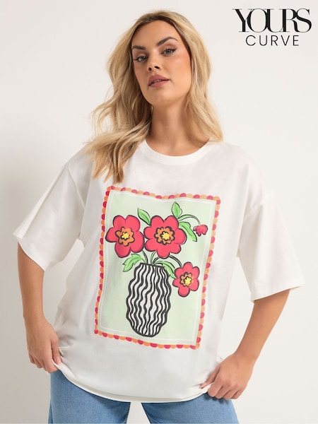 Yours Curve White Relaxed Placement T-Shirt