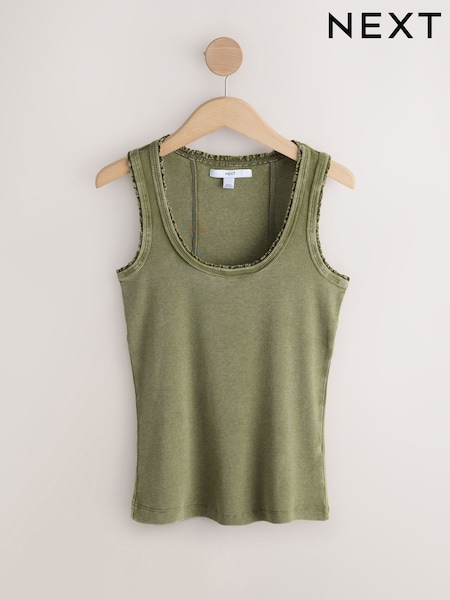 Khaki Green Premium Ribbed Scoop Tank Vest Sleeveless Top