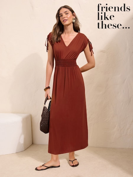 Friends Like These Rust Red V-Neck Shirred Waist Jersey Maxi Dress