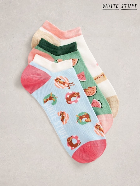 White Stuff Blue Dog Summer Trainer Socks 3PK