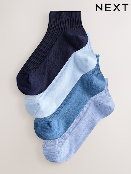 Blue Tonal Textured Trainers Socks 4 Pack