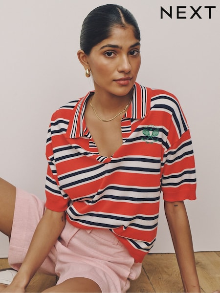 Red Stripe Cotton Rich Soft Touch Knitted Polo Top