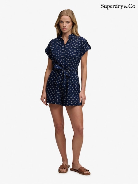 Superdry Navy Geometric Printed Playsuit