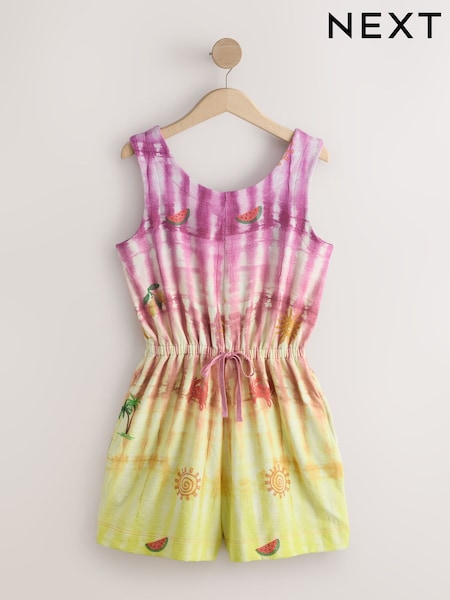 Pink Tie Dye Sleeveless Tie Waist Cotton Playsuit