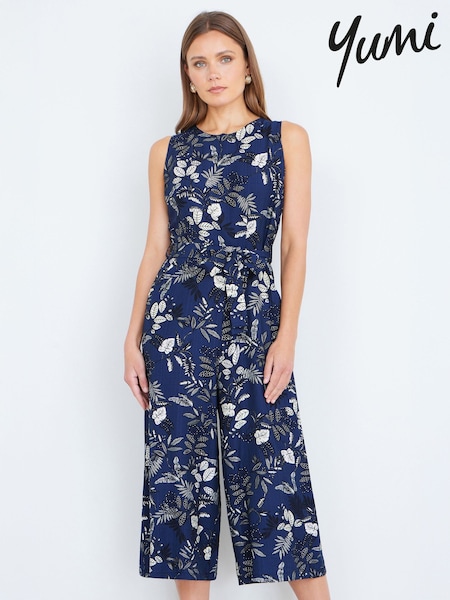 Yumi Blue Leaf Culotte Jumpsuit