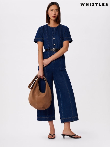 Whistles Blue Denim Pintuck Belted 100% Cotton Jumpsuit