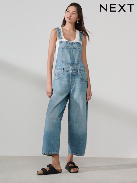 Light Blue Denim Barrel Dungaree Jumpsuit