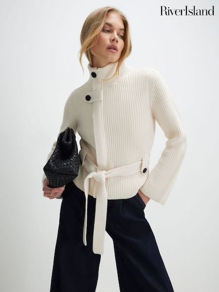 River Island Cream Petite Asymmetric Tipped Cardigan