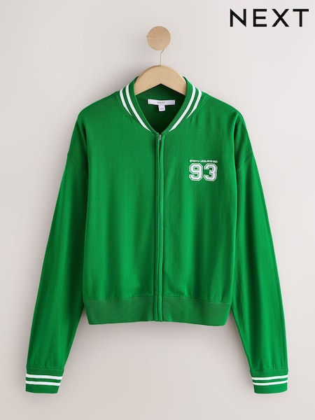 Apple Green Cotton Rich Soft Touch Embroidered Zip Up Bomber Cardigan