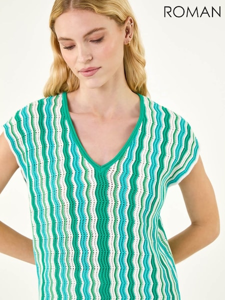 Roman Green Wave Stripe Knit Top