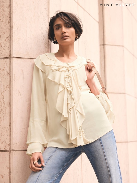 Mint Velvet Yellow Chiffon Ruffle Detail Blouse