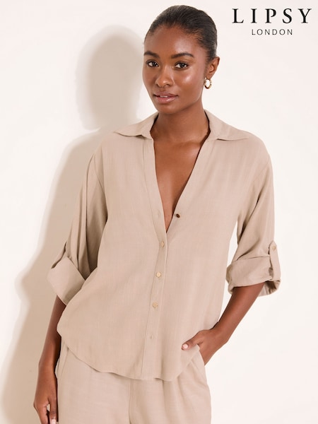 Lipsy Neutral Touch Of Linen Long Sleeve Shirt
