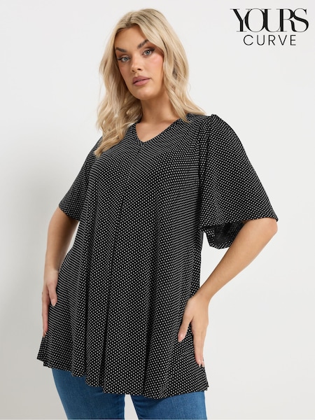 Yours Curve Black Dot Mesh Sleeve Blouse