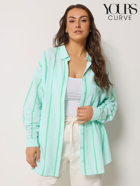 Yours Curve Blue Long Sleeve Linen Blend Shirt