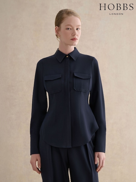 Mint Velvet Blue Cotton Scallop Detail Shirt