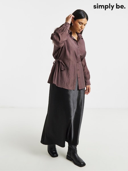 Lipsy Mink Brown Military Button Detail Satin Shirt
