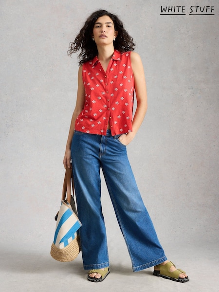 White Stuff Red Amy Emb Sleeveless Shirt