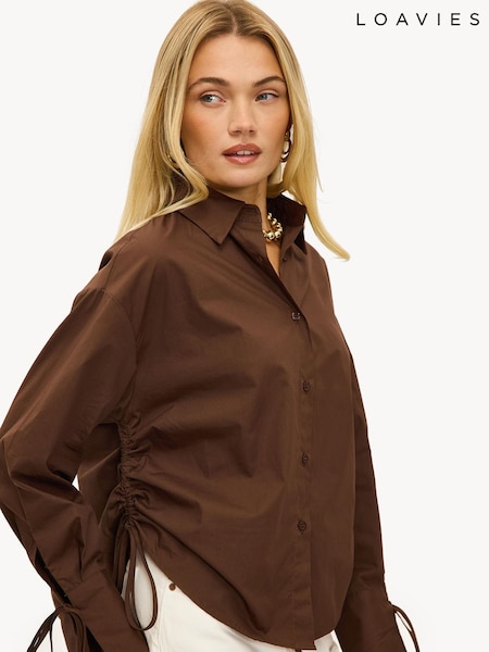 LOAVIES Brown Oversized Blouse with Ruched Side Detailing