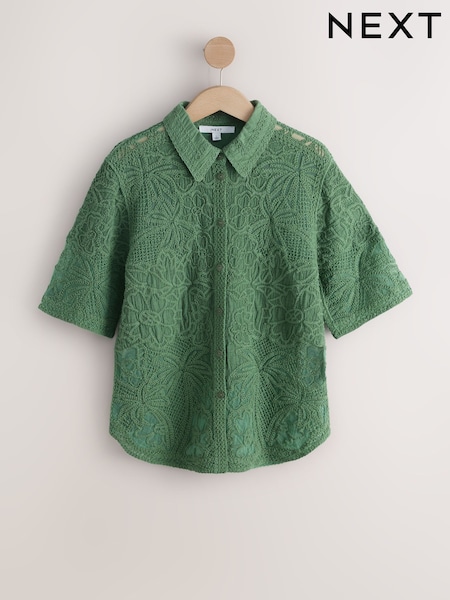 Green Crochet Short Sleeve Shirt