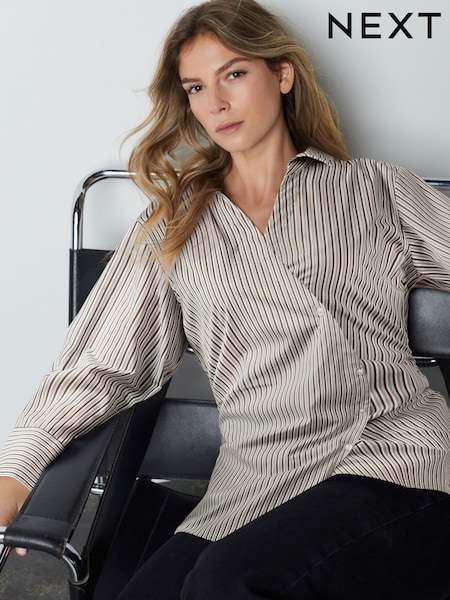 Blue/Brown Stripe Asymmetric Fitted Long Sleeve Shirt